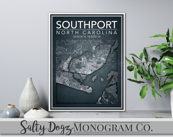 Wall Art Map Print Southport, NC Etsy Australia